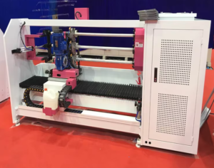 Máy cắt cuộn băng keo 3 trục tự động